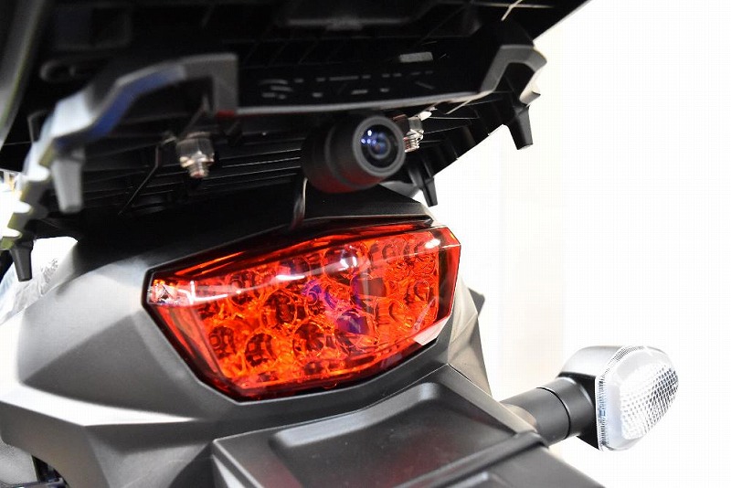 後方カメラはリヤフェンダー上部へ固定配線させて頂きました。 高画質で常時録画ですので万が一の時の証拠としても残りますし安心ですね。 (GSX-R125お取り付け事例)